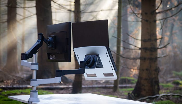 Por ejemplo, nuestro brazo para monitor Caparo tiene un impacto de 14,3 kg de CO₂, lo que equivale a las emisiones de CO₂ de conducir 44,9 km en coche. Además, compensamos cada kg de CO₂ necesario para fabricar un brazo para monitor plantando árboles junto con la organización sin ánimo de lucro One Tree Planted.