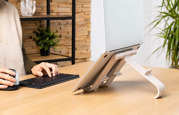 El Treepod es un soporte 2 en 1 que se puede convertir en un abrir y cerrar de ojos de un soporte para ordenador portátil a un soporte para tableta. Al elevar estas pantallas, nunca más tendrás que sentarte encorvado detrás de la pantalla y evitarás molestias en el cuello, los hombros y la espalda.