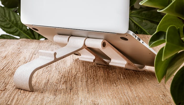 El soporte para portátiles y tabletas Treepod está fabricado con material 100 % «biológico» y compuesto principalmente por madera, lo que lo convierte en un producto ecológico.